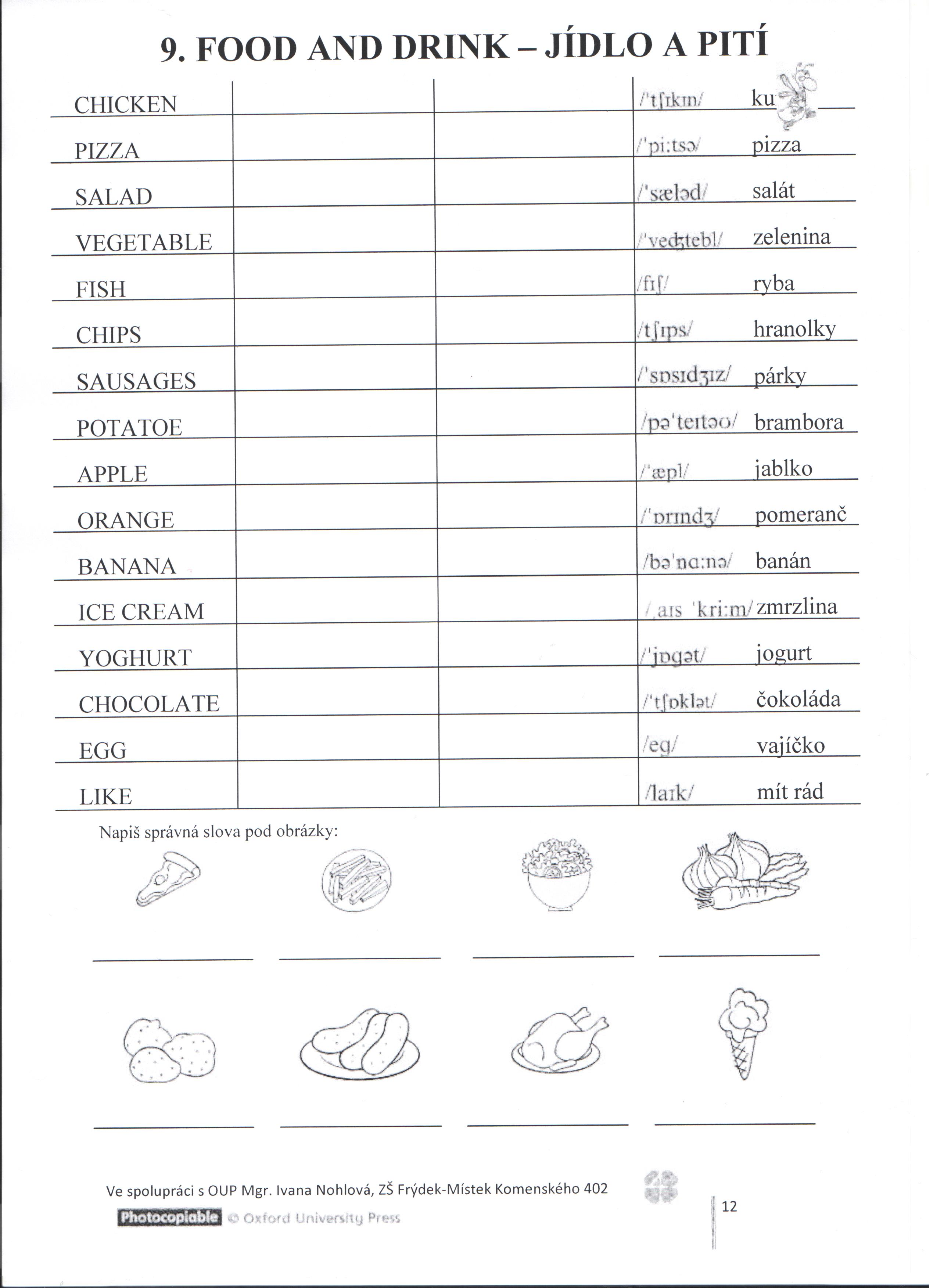 - Nová lekce č. 9. se týká jídla. Food and drink (jídlo a pití).