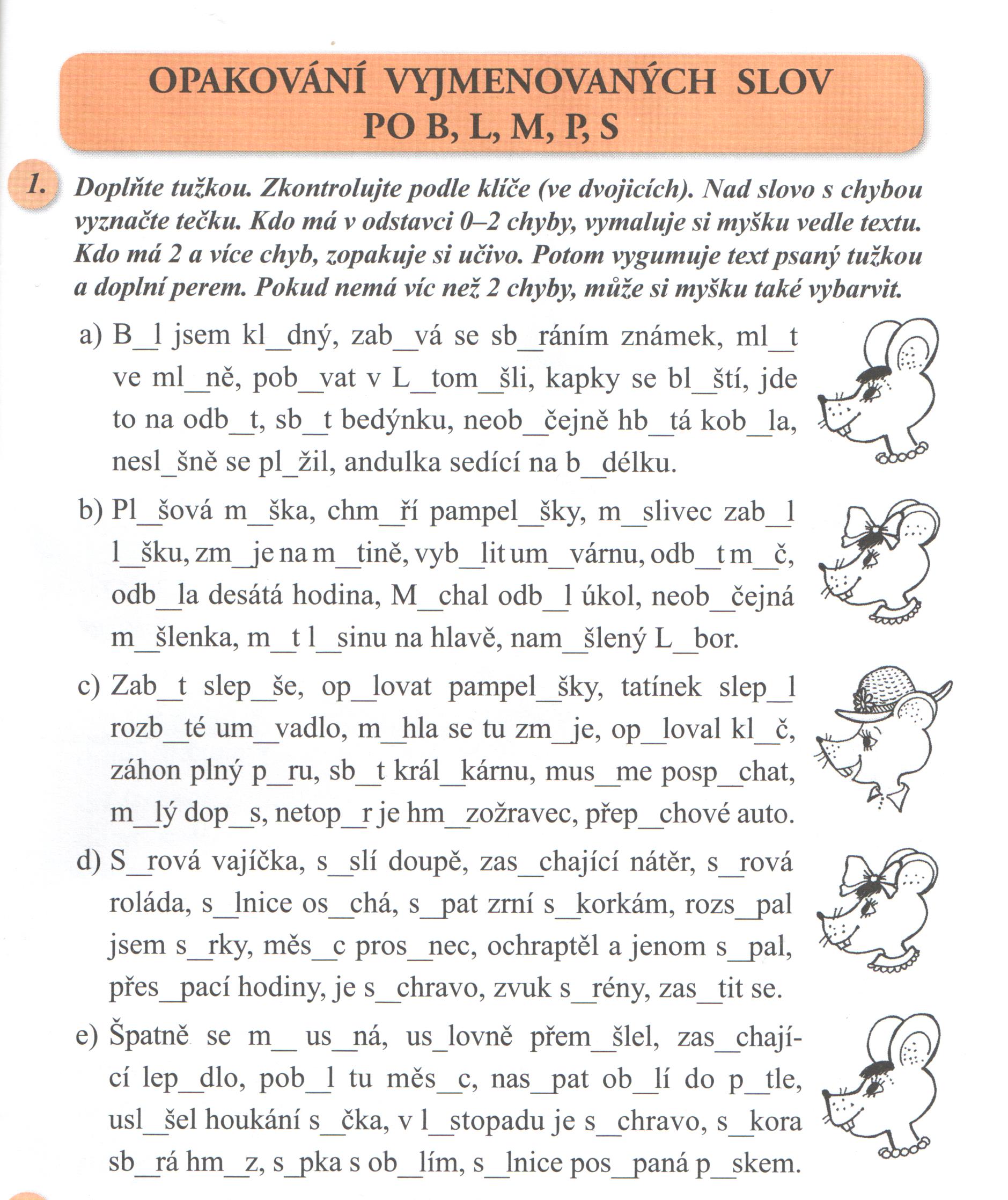 PL - doplňování i/y - opakování B,L,M,P,S- udělat cv. A, B - nutný tisk