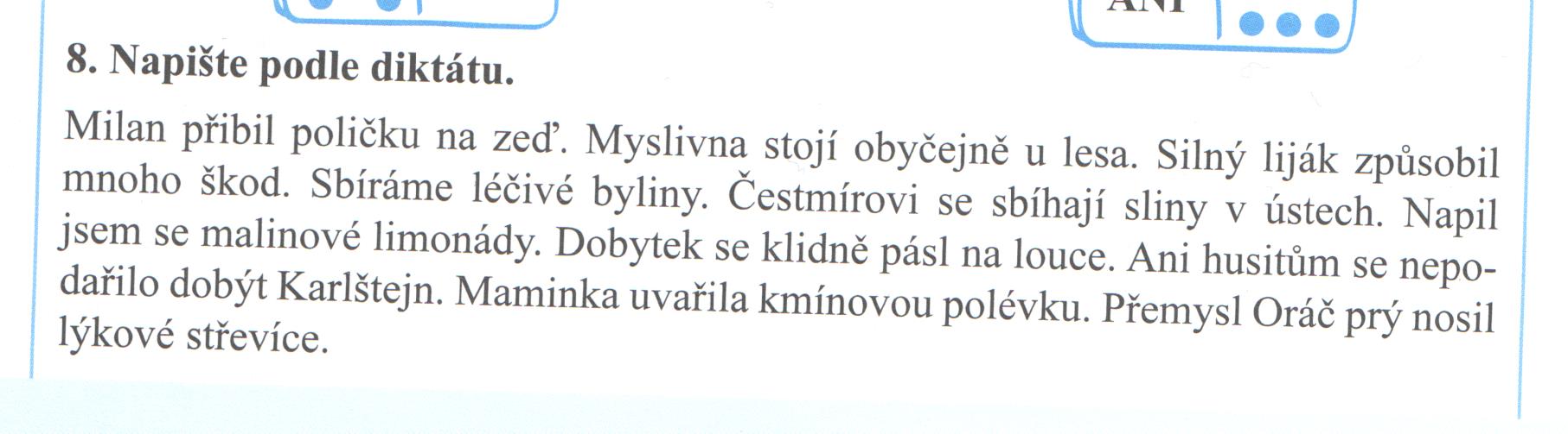 Diktát vět- napsat do sešitu diktáty nebo ČJ (co máte u sebe) - text níže: